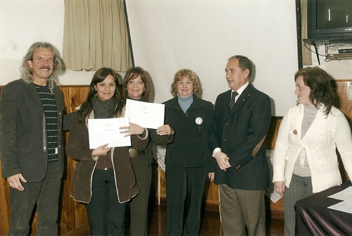 En el acto se entregaron las certificaciones emitidas por la Universidad de Buenos Aires y por la Red Iberoamericana UNESCO de Ecobioética. De derecha a izquierda, la Directora de Educación, Marcela Buyo, el Intendente Alberto Descalzo, Liliam Sapiro, mamá de Silvina Rainieri, Nora Mendez, mamá de Cecilia Roumieux, Pamela Romero -una de las 70 egresadas-, y en representación de la Facultad de Psicología, UBA, Juan Jorge Michel Fariña, responsable académico del curso.